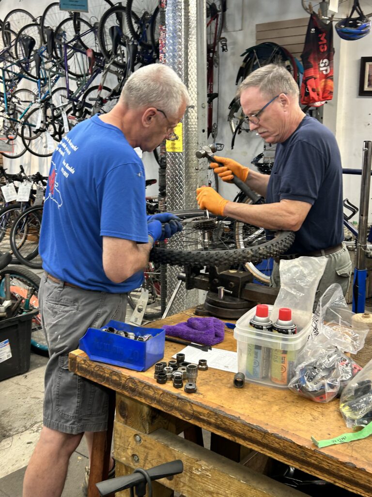 Anyone who wants to volunteer and help out is welcome. We provide a warm social environment and continual training and mentoring in bike repair.