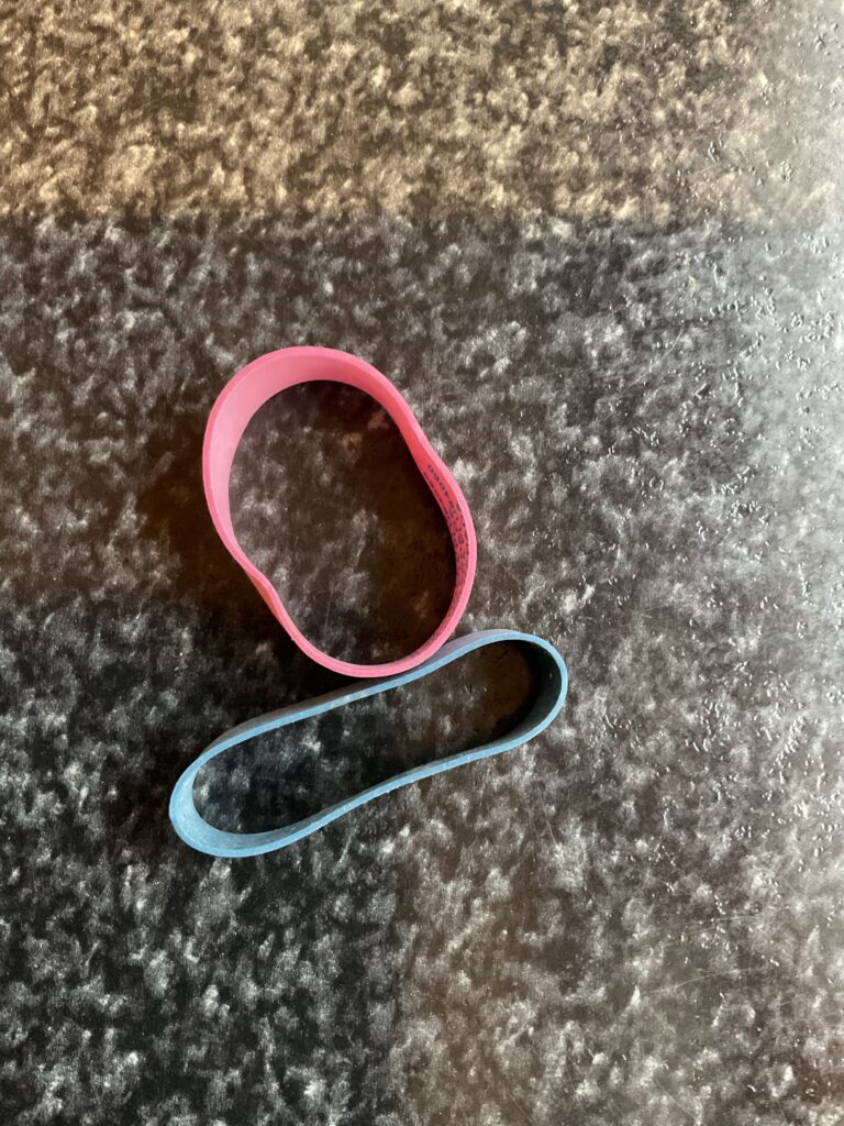 Rim brakes can squeal if not aligned well. A little toe-in helps, but how much? A small elastic wrapped around the back of the brake pad provides just the right gap.